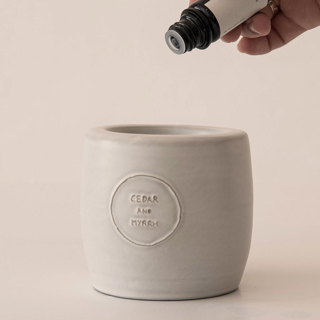 2. Handmade Ceramic Aroma Burner: A beautifully crafted ceramic burner designed to gently diffuse the aroma of Palo Santo essential oil, creating a peaceful atmosphere in any room.