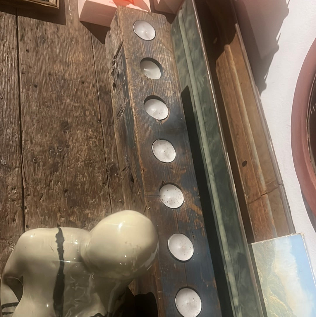 Wooden blue candle vessel large